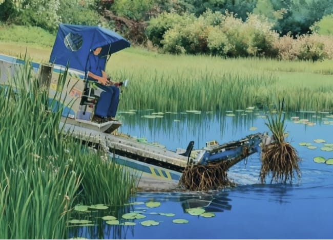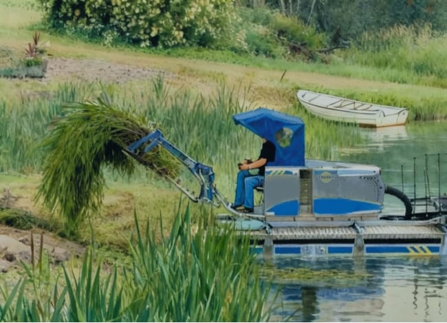 Kaip atliekami vandens augalų šalinimo darbai su amfibine technika. Plačiau apie naudojamą įrangą:  truxor.com